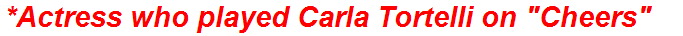 name of the actress behind one of its key characters might require some mental gymnastics. We all remember Carla, right? The sharp-tongued, no-nonsense waitress who kept the Cheers bar in check? But putting a name to that face can be the challenge.