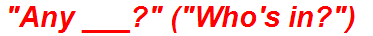 So, how do you approach a crossword clue like “Any ___? (‘Who’s in?’)” when you’re staring at an empty grid? First, consider the word count. Clues that are part of short, common idioms often have equally short answers, frequently monosyllabic. Next, lean heavily on the clarifying parenthetical. “(Who’s in?)” is practically begging you to think about invitations, participation, and presence. What single word, when combined with “Any,” completes a phrase meaning “Who’s in?”