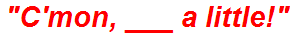 a little?” No, the number of letters doesn’t quite fit, or the tone isn’t quite right for the overall theme of the puzzle. Perhaps “C’mon,
