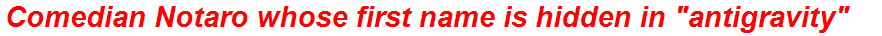 that perfectly blends celebrity recognition with a classic wordplay device. The clue points to a notable figure in comedy – a comedian named Notaro – with an additional, crucial piece of information: “whose first name is hidden in ‘antigravity’.” Immediately, this
