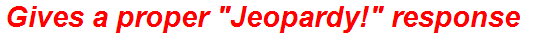 is to a “Jeopardy!” clue (which would be the “question” on the board). Instead, it’s asking what someone