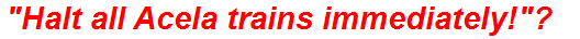 in question? “Halt all Acela trains immediately!?”