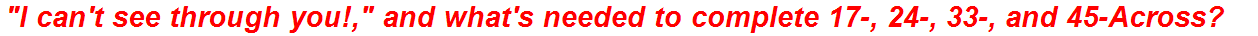 The beauty of a well-crafted theme is how it transforms the entire solving process. It’s no longer just about filling squares; it’s about deciphering a hidden message, understanding an inside joke shared between the constructor and the solver. When you finally crack a challenging crossword clue like this, the satisfaction is immense, a true triumph of wit and deduction. The phrase “I can’t see through you!” isn’t merely a hint; it’s an invitation to think beyond the obvious, to look for a commonality, a shared characteristic that binds 17-, 24-, 33-, and 45-Across together.