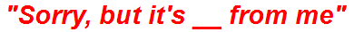 We’re talking about the classic, universally understood expression: “Sorry, but it’s __ from me.”