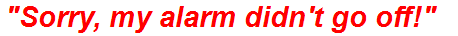 of the phrase. What follows “Sorry, my alarm didn’t go off!”? What is the