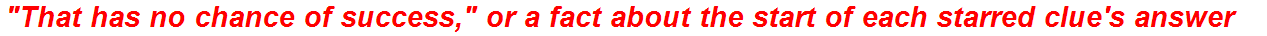 Welcome, crossword aficionados! Today, we’re diving into a particularly devilish grid, one that seems to be actively mocking our attempts at completion. Our focus, of course, is on the clue: “That has no chance of success,” or a fact about the start of each starred clue’s answer. The first part is a common phrase, however, the second part may hold the key to unlocking the whole grid. Buckle up, because we’re about to embark on a journey through etymology, historical trivia, and maybe, just maybe, eventual triumph.