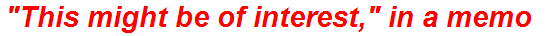 in the specific, efficient format of a memo. Think about the function of such a phrase: it’s a pointer, a signal, an indicator of noteworthy content.