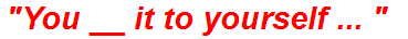 Our focus today is on one of those particularly evocative crossword clues: “You __ it to yourself…”